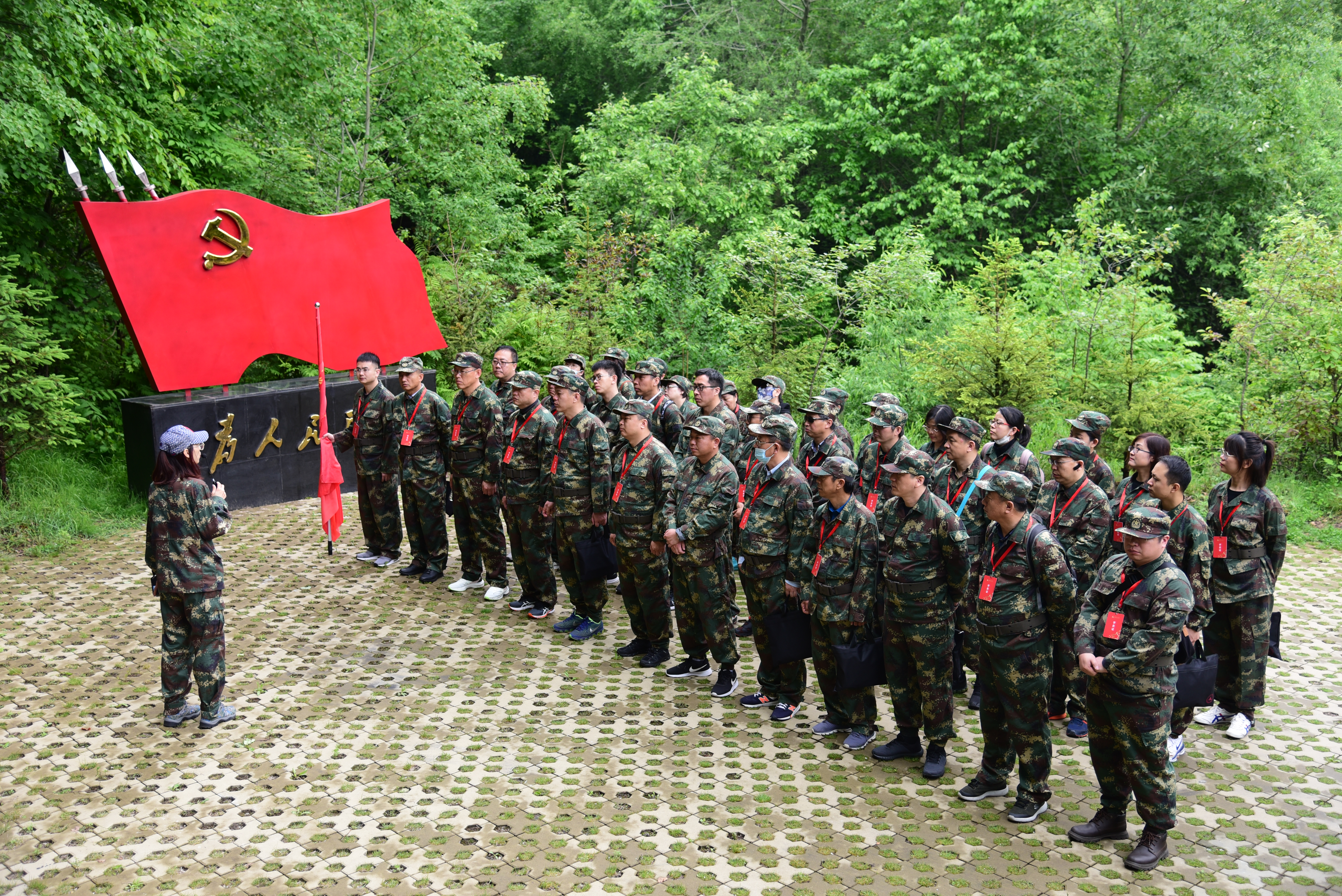 6月4日下午,在开班仪式后,全体学员在杨靖宇干部公司宣誓广场举行了“重走抗联路”出征仪式。面对鲜红的党旗,公司党委书记李善兴带领全体学员庄严宣誓,重温入党誓词。通化市委党校教师为培训班授旗并宣布出征命令。接着,学员们在靖宇陵园拜谒了杨靖宇将军并参观了东北抗联纪念馆。通过参观学习,学员们更深刻地领略了杨靖宇将军英勇无畏的革命精神和东北抗联14年浴血奋战的光辉历程。