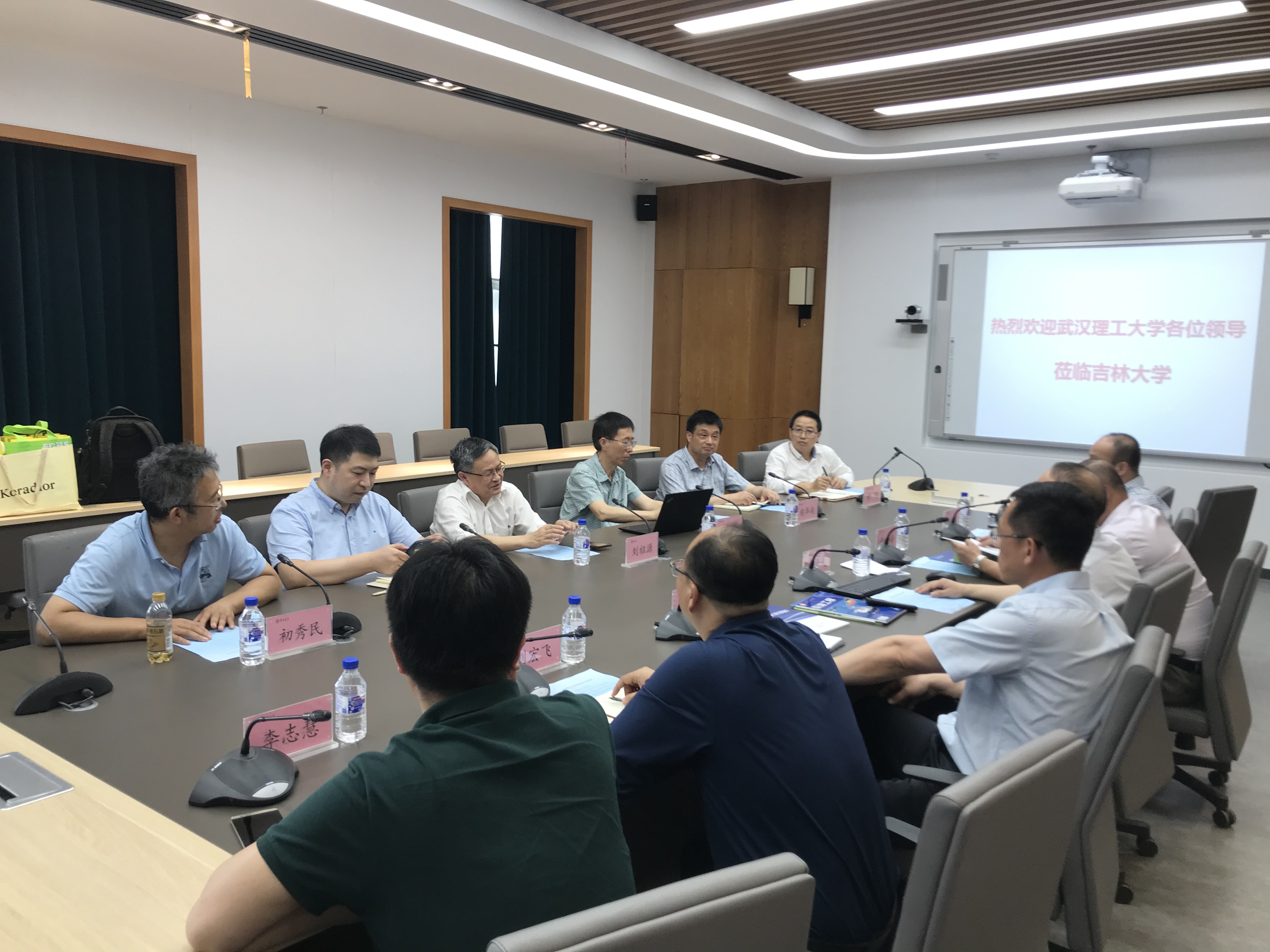 5月21日下午,武汉理工大学副董事长刘祖源、能源与动力工程公司经理范世东、智能交通系统研究中心主任张笛、beats365亚洲版官网副经理胡华南、国家水运安全工程技术研究中心副总工初秀民、智能交通系统研究中心教授钟鸣一行6人到公司beats365亚洲版官网进行调研交流。交通公司党委书记李善兴、经理李世武、副经理宫亚峰、副经理刘宏飞、副经理吕昆、交通信息工程及控制系副主任李志慧参加了会议。