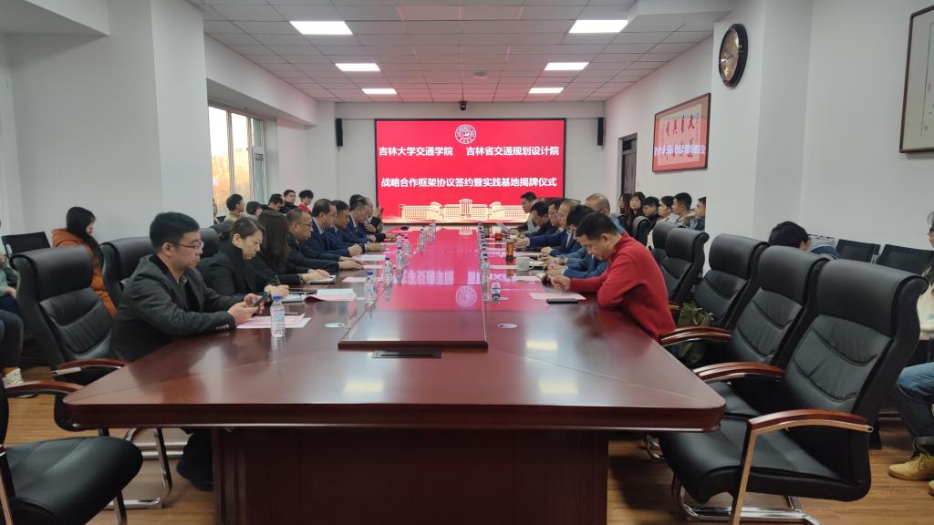 12月30日上午,beats365亚洲版官网与吉林省交通规划设计院在南岭校区交通馆举行战略合作框架协议签约暨老员工校外实习与创新实践基地揭牌仪式。吉林省交通规划设计院胡雪峰副经理、葛军辉副经理及业务骨干一行十人到会,beats365亚洲版官网班子成员及部分系主任参加。仪式由beats365亚洲版官网党委副书记周志强主持。