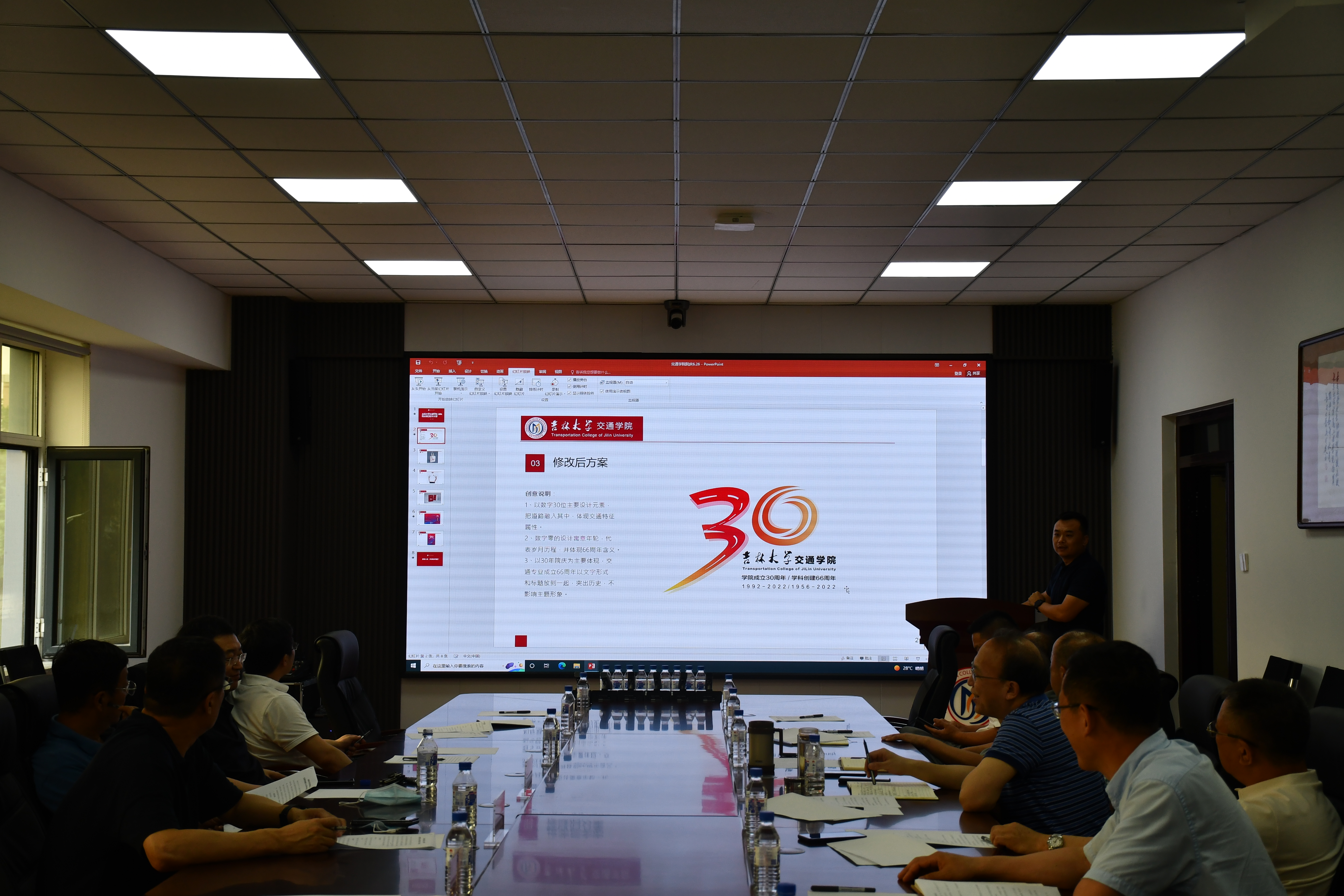 行政副经理吕昆向筹划委员会汇报了近期院庆筹备工作进展,对院庆各项活动内容进行进一步说明,并就员工联络工作向筹委会成员介绍了目前的工作方向和具体情况。公司党委副书记兼副经理夏立峰向筹委会征求了院庆标识的建议。