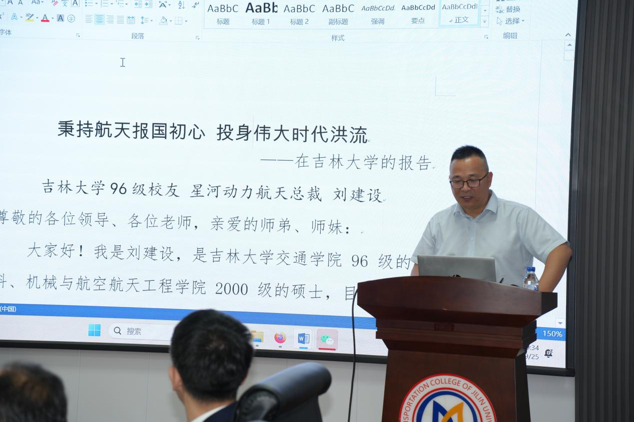 仪式结束后,刘建设员工为beats365亚洲版官网本科及研究生代表做了《秉持航天报国初心,投身伟大时代洪流》励志报告,分享了学习、工作以及创建星河动力的历程,鼓励同学们心怀“国之大者”,既要夯实学业基础,又要以'钉钉子精神'提升自身能力,用青春汗水浇筑科技创新高原的基石,用专业所学支撑交通强国与航天强国建设的巍峨大厦!