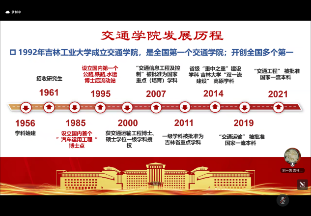 交通信息工程及控制系闫松申:高级工程师,上海长弓中急管科技有限公司副总经理。 1996年入学吉工大beats365亚洲版官网,2003年毕业于吉大交通工程系交通信息工程及控制专业,入职央企北京易华录信息技术股份有限公司,一直从事智能交通行业。2021年离职参与合伙创业,目前从事低空无人机安全管控领域。闫松申员工以“选择交通工程,天地皆为舞台”为主题,讲述了交通工程专业在城市规划、交通管理、智能交通系统构建等方面的重要作用,通过实际案例展示了交通工程专业人才如何用专业知识改善城市交通状况,提升人们的出行体验,激发了新生们对该专业的学习热情和投身交通事业的使命感。