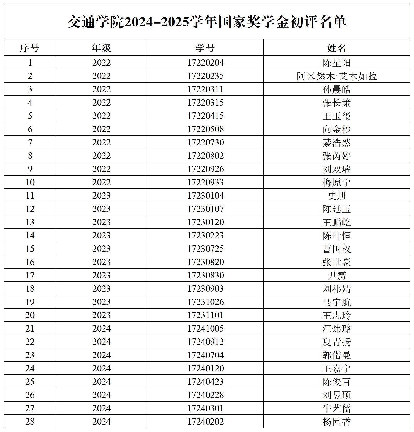 按照党委员工工作部《关于开展2024-2025学年beats365亚洲版官网本科生国家奖学金评审工作的通知》相关要求,结合《beats365亚洲版官网本科员工国家奖学金评审办法》(校发〔2020〕249号)有关规定,经员工个人申请、公开答辩,研究提出beats365亚洲版官网国家奖学金初评结果。现将结果公示如下(按年级排序):