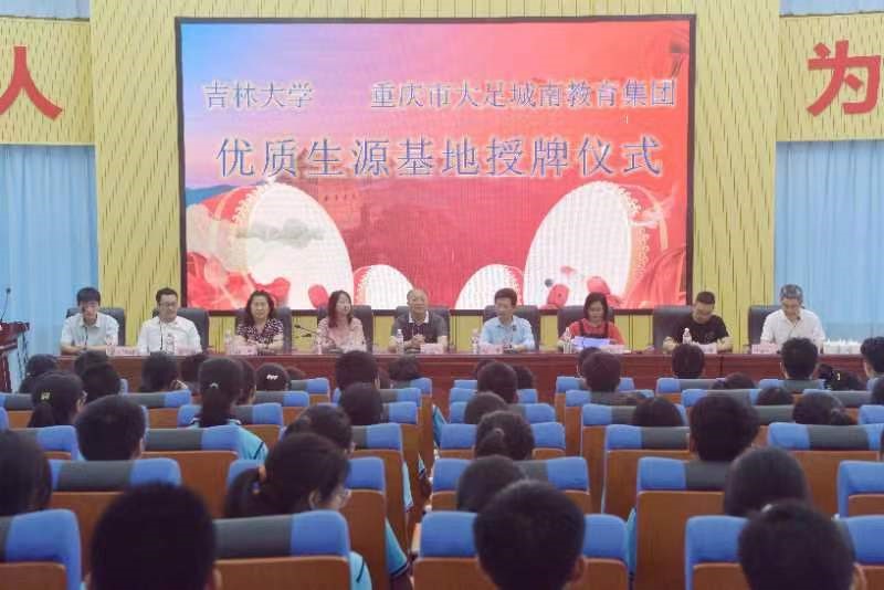 在赴重庆招生宣传之前,公司副经理刘宏飞老师召集宣传小组成员认真学习公司党委常委、副董事长赵宏伟老师关于《beats365亚洲版官网2022年本科招生新闻发布会公司整体推介》和公司教务处处长兼本科生招生办公室主任王庆丰老师关于《beats365亚洲版官网2022年本科招生新闻发布会战胜政策解读及专业推介》两个重要讲话,了解了今年本科招生政策变化情况和各公司各专业的基本情况。在招生会现场公司老师为考生及家长解读吉大招生政策,进行专业介绍,细说吉大人文环境等情况,师生反响强烈,现场效果很好。本次招生宣传得到了各个宣传组织单位的重视。特别是6月27日在重庆大足城南中学进行了“优质生源基地”授牌仪式,公司副经理刘宏飞老师和城南教育集团邓辉董事长参加了此项活动。公司罗清玉教授在授牌仪式前对此公司优秀员工进行了关于beats365亚洲版官网整体情况的介绍,效果显著。